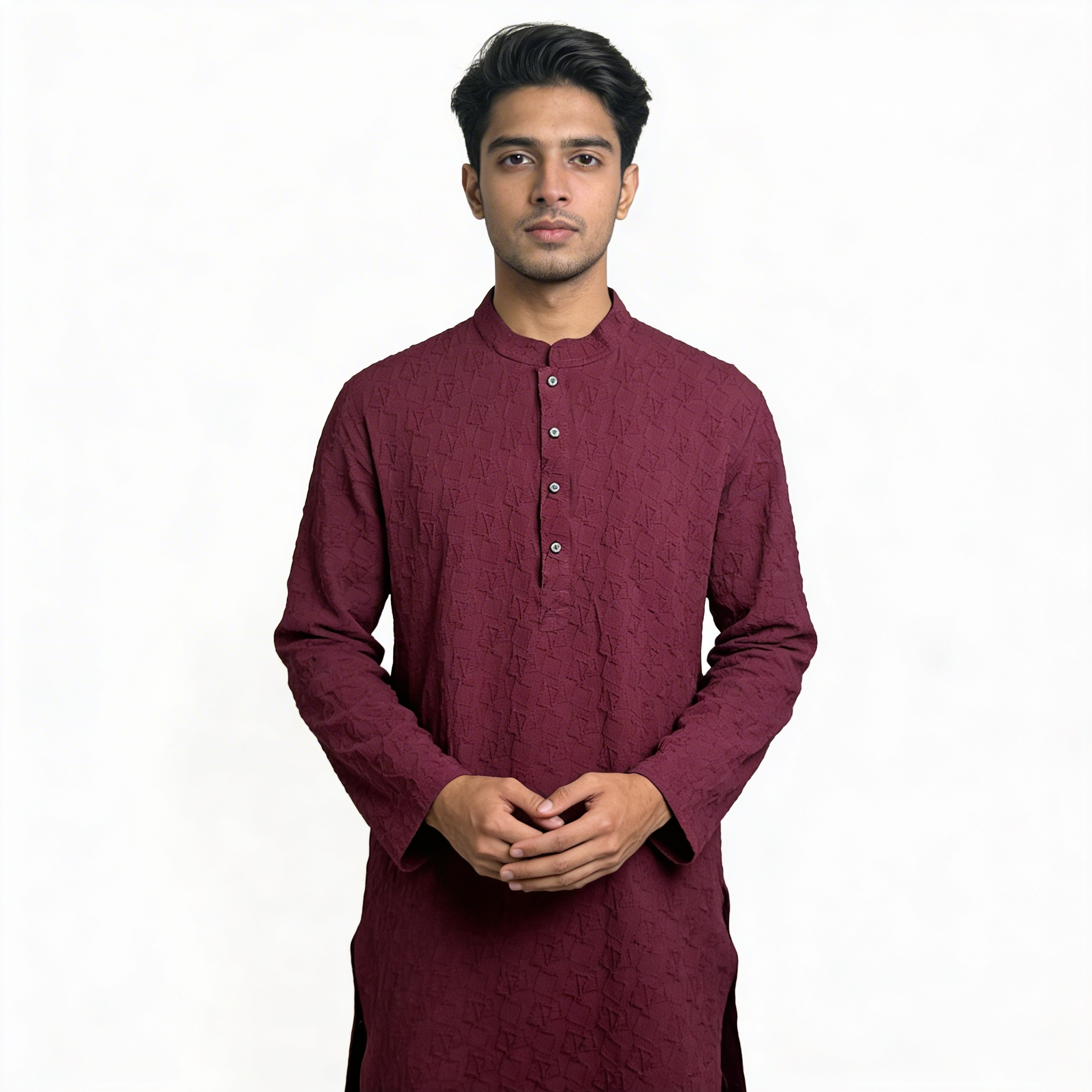 প্রিমিয়াম Popcorn Cotton Blend ফ্যাব্রিক, ২–৫% Spandex দিয়ে তৈরি, যা দেয় স্মার্ট স্ট্রেচ ও পারফেক্ট ফিট।