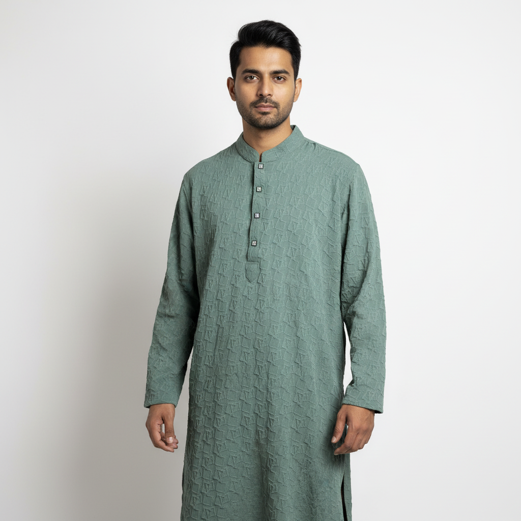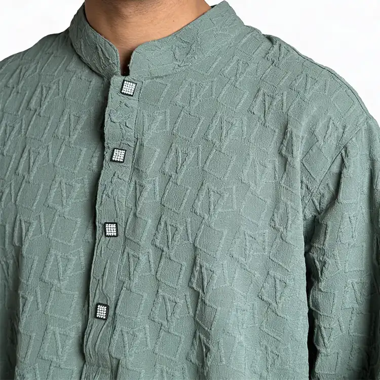 প্রিমিয়াম Popcorn Cotton Blend ফ্যাব্রিক, ২–৫% Spandex দিয়ে তৈরি, যা দেয় স্মার্ট স্ট্রেচ ও পারফেক্ট ফিট।
